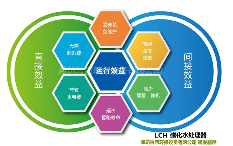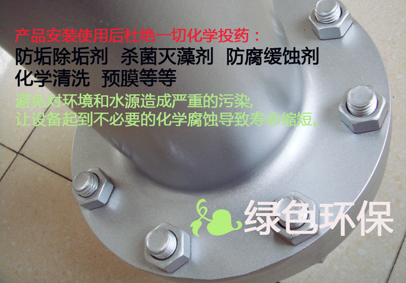 水分子有較強(qiáng)的極性,水或溶液以一定的速度垂直磁力線流經(jīng)強(qiáng)磁場時,使水分子破碎為單個或較小的締合水分子,使水發(fā)生了物理變化,并改變了原子或分子結(jié)構(gòu),其電導(dǎo)率、溶解度、滲透壓、溶解氧、表面張力和PH值均有所變化,電荷積聚在鍋爐和管壁上,與磁化后的水及溶液中的離子電極性相互吸引,在鍋爐或管壁上形成一層荷電性相反的保護(hù)膜,保證了設(shè)備內(nèi)壁不受腐蝕,磁化水在蒸煮過程中,使鈣和鎂離子生成疏松的CaCO3和MgCO3,瞬間結(jié)成顆粒狀的晶體,像沙子或雪花片一樣被水流沖刷并帶到排污口排除。同理,對原來水垢而言,其礦物鹽結(jié)晶的分子間維系亦告削弱,因而能慢慢溶解、逐漸龜裂、疏松軟化、自行脫落下來,并隨爐水的定期排污而排出。并且具有殺菌滅藻的獨(dú)特功能。